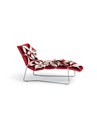 Antibodi chaise longue by Moroso comes with a very modern design representing a floral pattern in relief. It has a stainless steel base and a fabric or leather cover bonded with polyurethane foam and mesh.