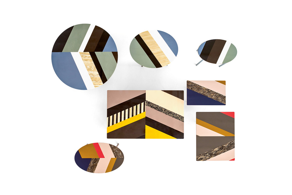 These side tables interpret the inlay technique in a modern key through original colors and geometric herringbone shapes. The apparently casual combinations play with bright colors or pastel tones. The Fishbone side table by Moroso is available in three sizes and three color versions, one oriented towards yellow tones, one towards green and blue, and one oriented towards strawberry, toffee, cocoa and dove-gray colors.