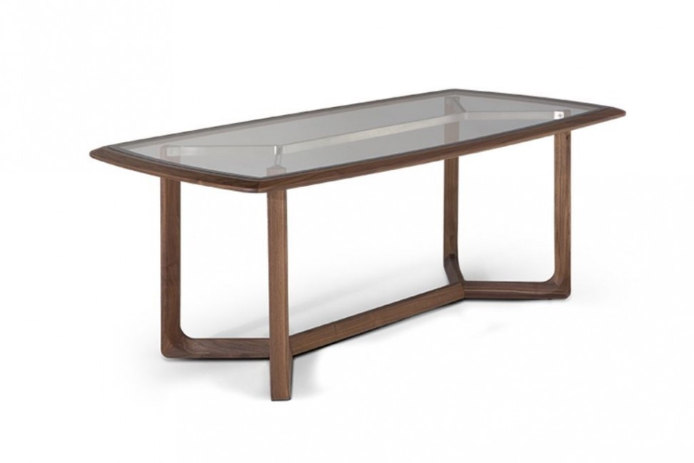 Natuzzi Italia relies on Jamie Durie's design to present Amber, a collection of tables with a direct and modern style. Available in two sizes, Amber is characterized by a wooden structure that sinuously encloses the glass top. The base of the top is supported by solid metal inserts that complete the elegant mix of materials proposed by the table.Natuzzi Italia