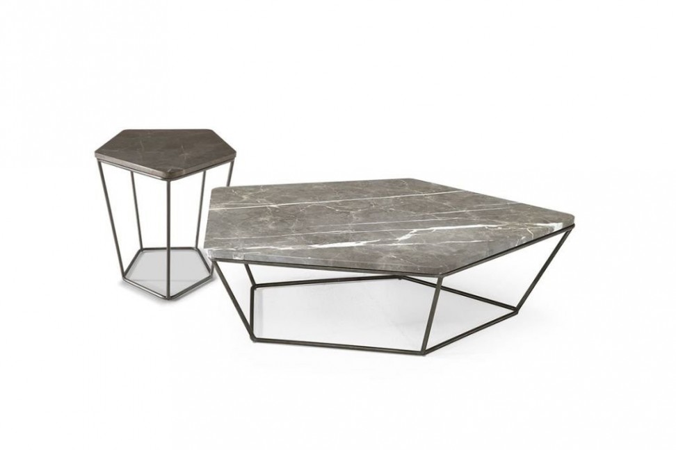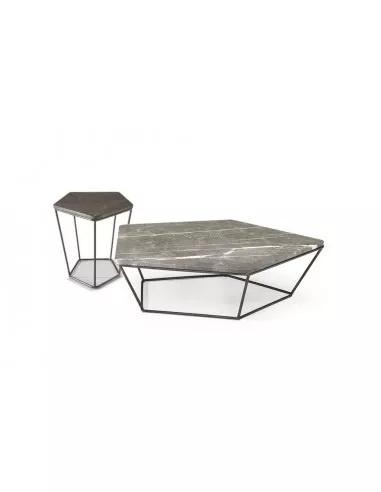 Made in different sizes and shapes, Chocolat features a metal base with a pewter-colored finish while the top is available in marble or stone, subjected to a special anti-stain and waterproofing treatment to ensure greater resistance.