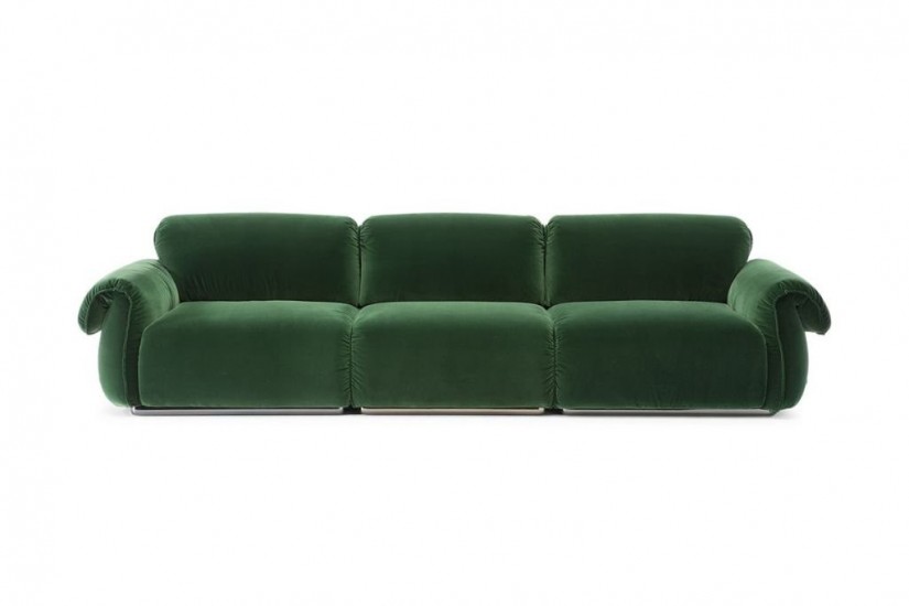 Curved armrests and backrests, ripples and quilted stitching define this sofa, making it the undisputed protagonist of the environment in which it is placed.