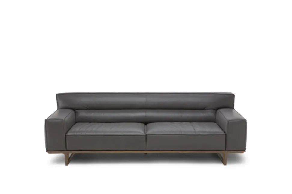 Available in both fabric and leather, the Kendo sofa is characterized by peculiar stitching along the edges and on the backrest, and by a wooden base embellished with metal inserts.