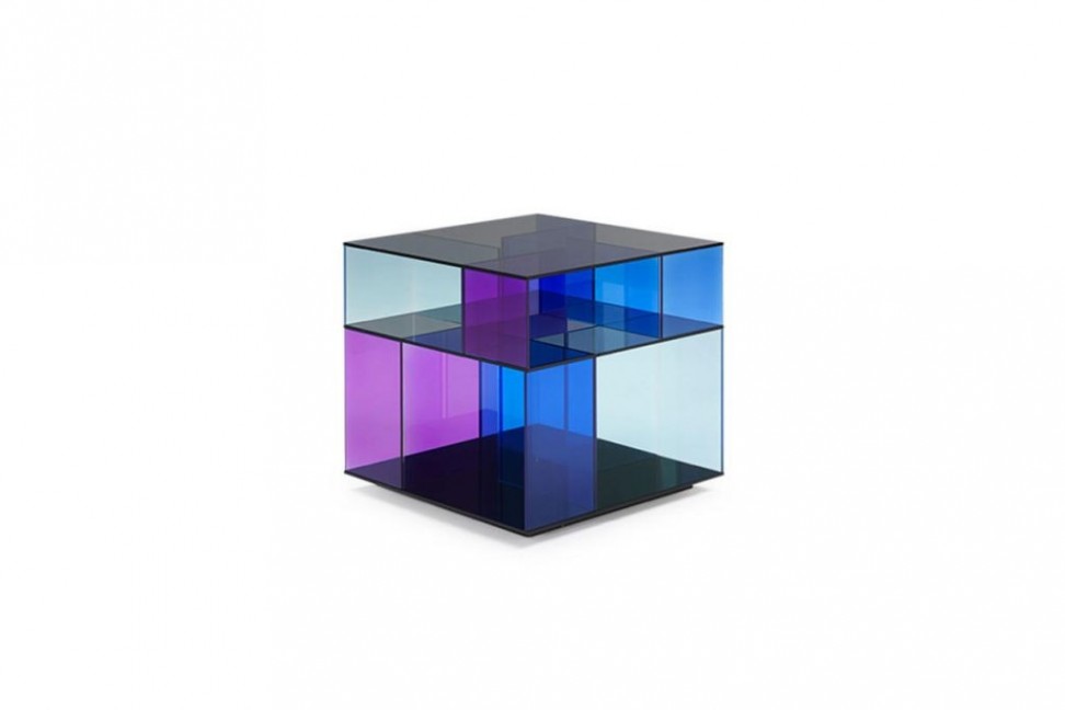 Color contrasts and geometric combinations make Labirinto one of the most original collections of Natuzzi Italia production.Created for the famous Made in Italy furniture brand by the designer Claudio Bellini, this collection consists of versatile and multi-functional low tables, able to respond not only to aesthetic but also practical needs. The play of colors created by the intersection of glass tops give an effect of changing lights and colors, while the compartments in the structure allow you to use the low tables also as bookcases.