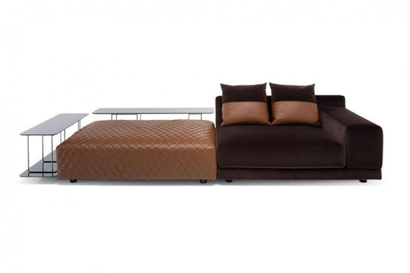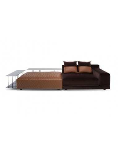 Available in a wide range of configurations and compositions, the Melpot sofa features a fabric or leather cover, for some elements enriched with a quilted decoration, and it can also be made in a particular two-colour version.