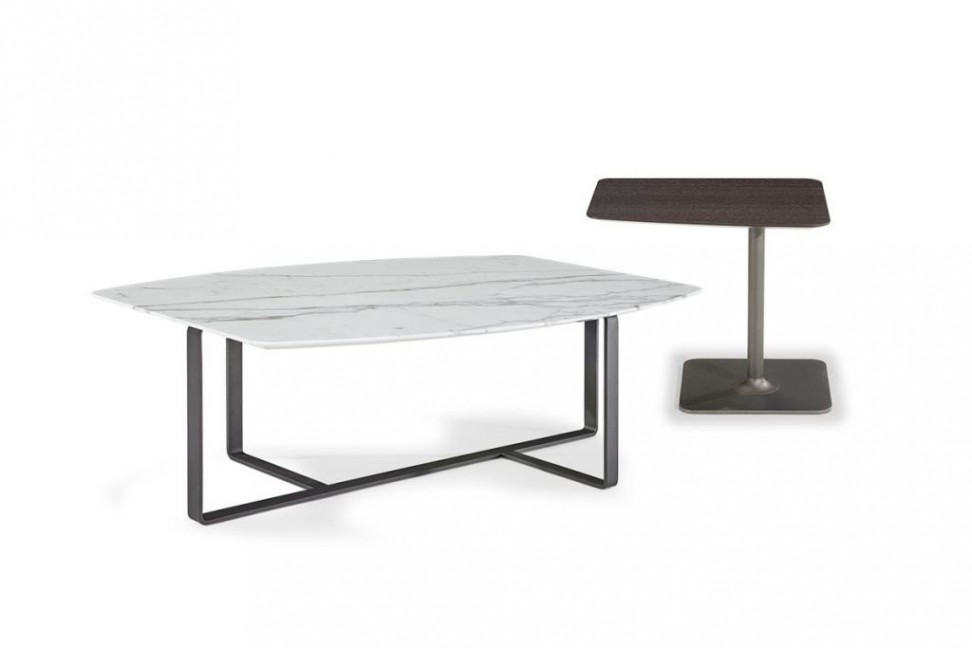The Tempo coffee tables, made in various models of different shapes and sizes, consist of a metal structure painted anthracite and a top in wood, marble or stainless steel in a special silver finish.