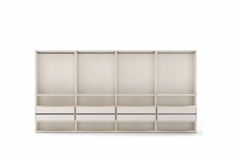 The Ben walk-in closet by Novamobili comes in four different heights, so it can perfectly fit any space. The same linear or corner modules come in sizes that allow for various compositions based on your needs.