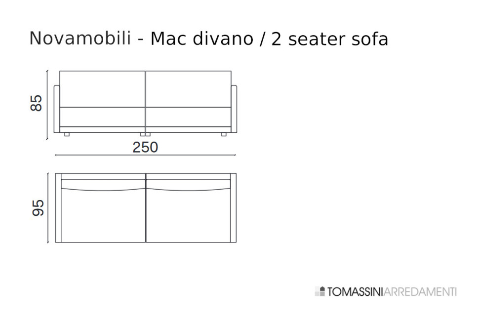 The indicated price refers to the Mac sofa in size 250x95x85h cm, composed of a left and right section, with upholstery in a mid-range fabric category.