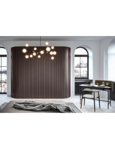 One of the standout features of the Stave wardrobe by Novamobili is its availability in curved modules. This option allows you to make the most of even challenging spaces, adding a touch of originality and style to your home. This wardrobe, with its modern lines and high-quality materials, fits perfectly into any space, from the living room to the bedroom. It is also very practical. Thanks to its spacious interior, it offers great organization for your clothes and accessories. The sliding doors ensure easy and quick access, making your daily routine simpler. The attention to detail is evident in every element. Made from high-quality materials, the Stave wardrobe by Novamobili is designed to last over time.