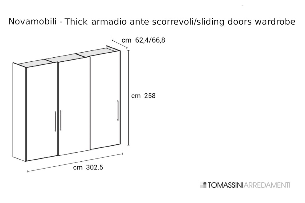 The Thick sliding doors wardrobe has the following dimensions and configurations