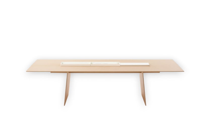 The Kanji table by Paola Lenti, available in two sizes, has a central band divided into independent and removable elements. If necessary, these elements can be replaced with a cutting board in stoneware or marble and a tray in glossy white metal, which can be inserted at will and according to the desired configuration. The Kanji table won the Red Dot Award in 2016 in the Product Design category.
