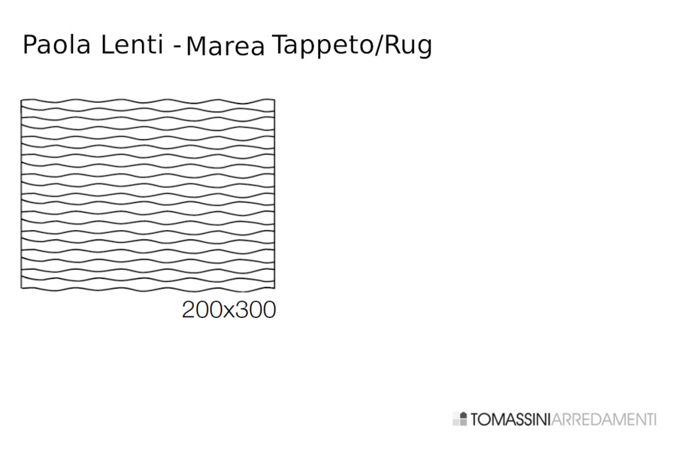 Marea is a rug suitable for both outdoor and indoor use, like others Paola Lenti rugs. It is made of wavy braids in Rope mélange or solid Aquatech yarn, sewn lengthwise. Each braid has a fringe at the ends, always placed on the short side of the rug. It is available in one color only. The width of the braids ranges from 7 to 9 cm for the Rope version and from 10 to 12 cm for the Aquatech version. Therefore, the measurement of the short side, which depends on the number of braids, may vary.