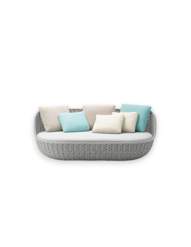 The Orbitry outdoor sofa, born from the collaboration between Victor Carrasco and Paola Lenti, features a steel frame covered with flat cord that gives this sofa an original and immediately recognisable shape, capable of bringing a touch of liveliness and colour, thanks to its numerous finishes, to any outdoor environment. The Orbitry outdoor sofa is part of the collection of the same name, which also includes an armchair and a suspended seat.