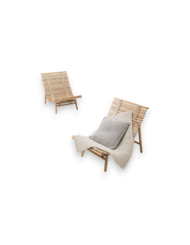 The trait d'union of the whole Shibui series of which they are also part chaise longue and platform suspended and on the ground, is to emphasize the bamboo. The structure of the armchair is in fact in turned bamboo treated with a water-based finish, while the seat and back are made of bamboo sticks tied with jute straps and fixed to the structure. The Shibui armchair is also perfect for an indoor setting.