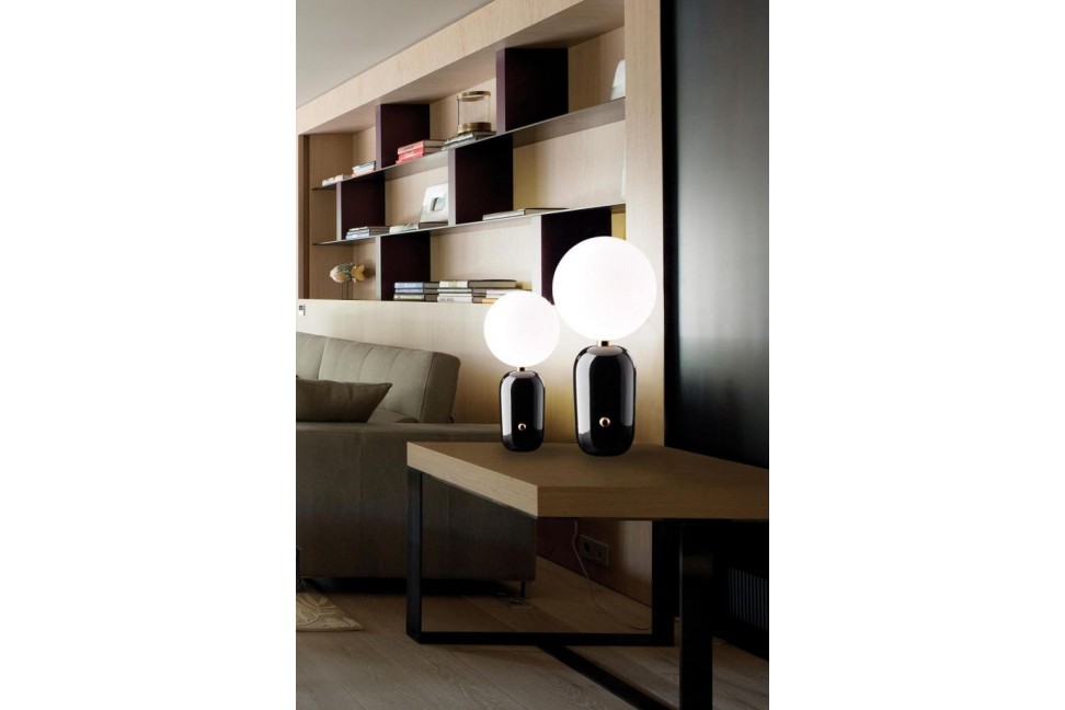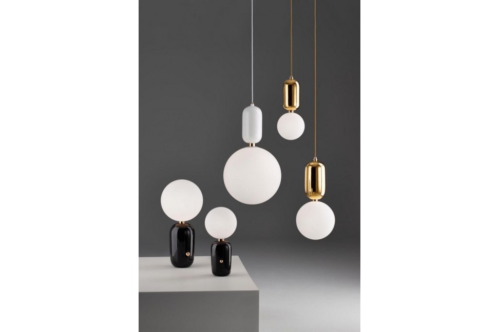 The elegant Aballs lamp collection was conceived by the designer Jaime Hayón for Parachilna, an emerging Spanish brand specialized in the design lighting sector.The Aballs M PE table lamp is distinguished by the refinement of its simple and modern lines that define both the ceramic base, available in black, white, copper and platinum finishes, and the matt glass sphere on the upper part, source of a soft and delicate light. The essential style of the lamp is enriched by a rotating polished brass button positioned at the center of the base, which performs a practical and aesthetic function. The Aballs table lamp comes in two sizes, and is also available in the ceiling, wall and suspension versions.
