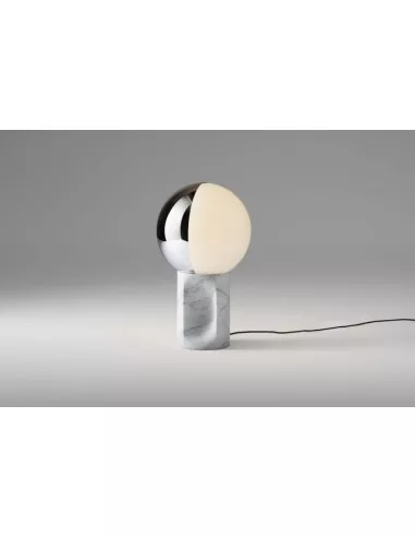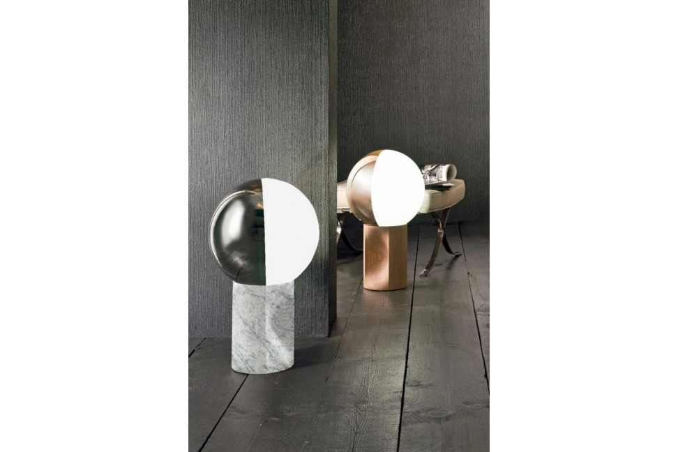 Born from the successful collaboration between the designer Carlo Colombo and the Italian lighting brand Penta Light, this lamp stands out for the close structural bond between two aesthetically different solids: the cylinder of the base and the sphere of the luminous body. These elements can be customized by combining the finishes of the base, which comes in Carrara marble, oak, gray or anthracite stained oak, and the 360 ° rotating diffuser in half white and half silver glass. The Je Suis lamps collection also includes the floor version, which features the same finishes as the table one.