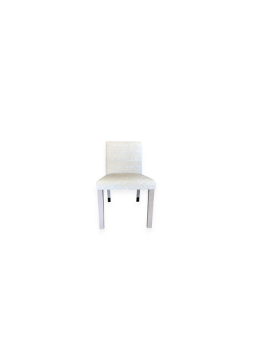 Chair with wooden base, insert and back tip in metal, cover in avory white coloured patterned velvet.