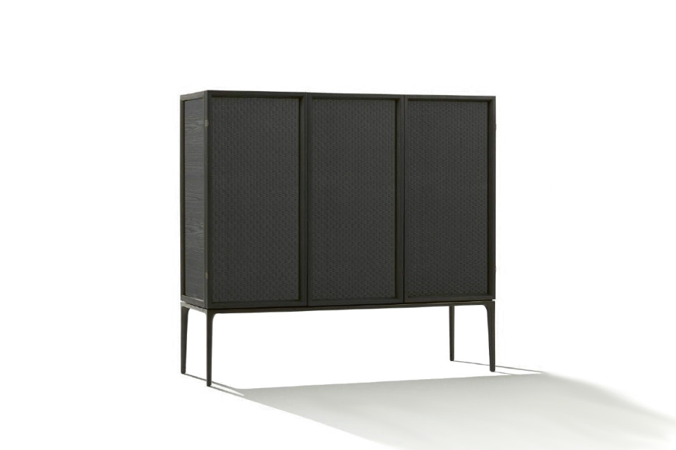 The Aiko Sideboard line is inspired by antique sideboards is available in five configurations and two different feet heights. Jean-Marie Massaud draws inspiration from ancient beliefs, and it's characterized by swing doors with small handles in matte brown nickel recessed at the top.