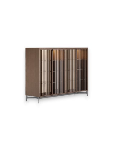 The new collection of sideboards within the Code system, named Code Day System, is a testament to the design and functionality focus of Poliform's R&D team. This line of sideboards perfectly complements the Code living system, providing a versatile and customizable solution for furnishing living and bedroom areas. One of the distinctive features of the Code Day System sideboards is the front panel with strips of wood and transparent glass, with a matte-painted frame and handle. This aesthetic choice bestows a refined and contemporary elegance upon the sideboards, enabling them to easily adapt to different styles of interior design. Within the Code system, it is also possible to replace the glass front panel with the Tape slatted door, offering additional customization possibilities.