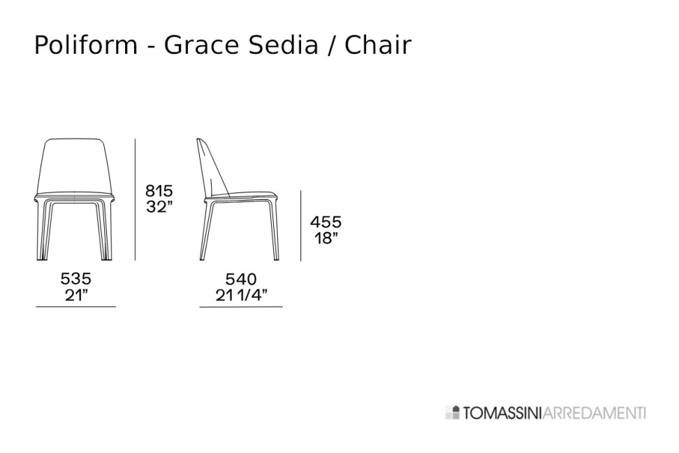 Poliform Grace Chair has the following dimensions and configurations