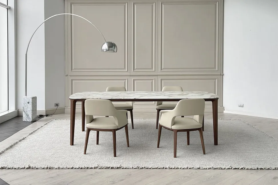 An expression of elegance and attention to detail, the Henry table by Emmanuel Gallina designed for Poliform is dining table with generous dimensions, ideal for moments of conviviality. The solid wood frame, highlights refined cabinet making. This combination of materials and finishes allows the Henry table to blend in with different furniture styles, offering a wide range of possibilities.