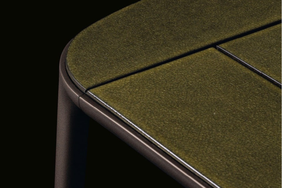 Technical Features: The structure is made of die-cast aluminum, a lightweight yet extremely sturdy material. The top is available in natural teak or stoneware with cast glass. Both options offer a smooth, durable, and easy-to-clean surface. Teak adds a warm, natural touch, while stoneware with cast glass adds a sophisticated note, with a soft, glossy feel.