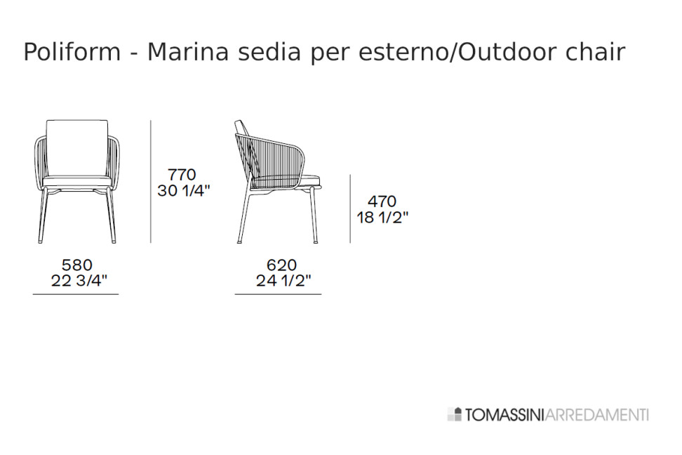 The Poliform Marina Outdoor Chair is produced in a single size: cm. 58x62x77h.