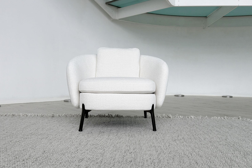 With the Orbis Armchair designed by Emmanuel Gallina, Poliform introduces a piece of furniture that reinterprets the living room in a more intimate and understated way. The enveloping design of the backrest defines a small area dedicated to relaxation, conversation, or simply a moment of respite. The presence of ample, soft shapes makes the armchair inviting at first glance, while the slender metal base adds a lighter, more sophisticated visual touch.