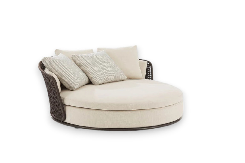 The Soori day lounge is characterized by rounded lines and generous shapes, perfect for enjoying your outdoor space in total relaxation. Soo Chan has reinterpreted the weaving technique to create an elegant back characterized by a geometric pattern, which gives the project a highly decorative and contemporary effect. The Malaysian architect and Poliform have also paid particular attention to the selection of fabrics chosen for the upholstery: textured fabrics that offer a pleasant sensation to the touch.