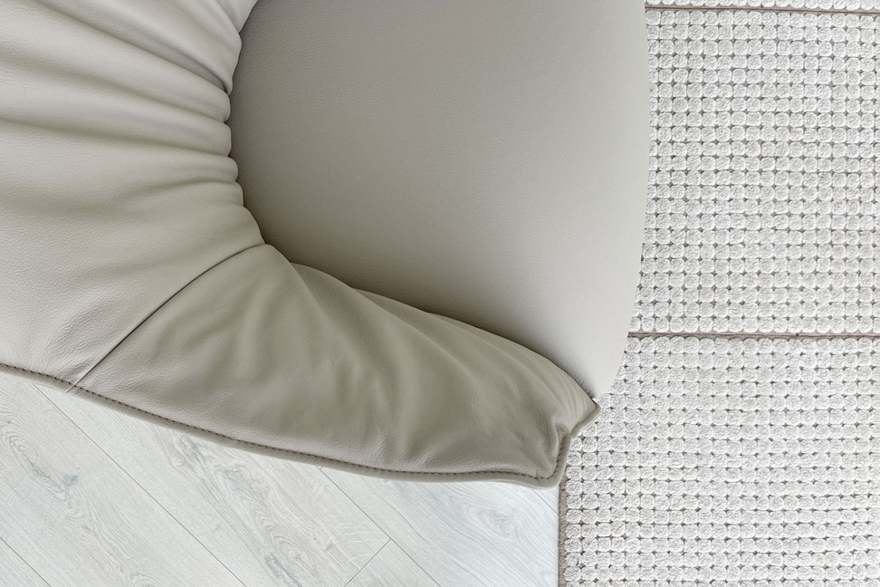 Jean-Marie Massaud's Archibald A armchair made for Poltrona Frau stands out for the high quality of its materials and the sophistication of its design, following in the stylistic evolution of the iconic Archibald armchair. The generosity of its wide and deep seat allows for unparalleled comfort, creating a surprising visual balance thanks to the contrast with the lightness of the aluminum feet. The Archibald A leather armchair on offer at Expo in our showroom features a gunmetal finish base and a powder-colored leather upholstery.
