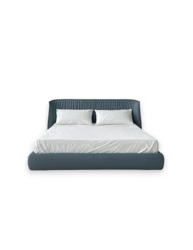 The Archibald Bed, on offer at Expo in our showroom, features refined blue leather upholstery and offers comfort and modern elegance. The leather headboard adds a touch of continuity and aesthetics, while the black aluminum legs complete the design with a simple, sophisticated touch.