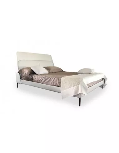 The Coupé De Luxe Bed on Expo Offer in our showroom features an elegant off-white leather upholstery and steel feet.