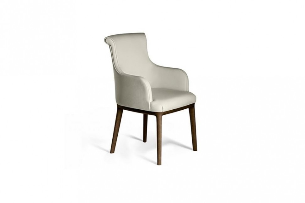 The taste and elegance that have always distinguished this brand are evident here in the delicate final volute of the backrest, in the sinuous lines of the armrests and in the extreme care of the finishes. Diva is available both in the armchair and in the chair version, and in both cases it is proposed with upholstery in Pelle Frau® leather or in Poltrona Frau fabrics, and with base and feet in solid ash wood in a wengè or moka finish.