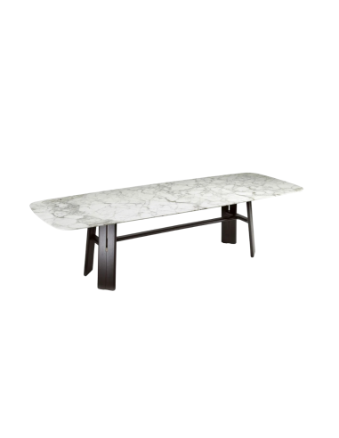 The Duo table by Poltrona Frau, designed by Roberto Lazzeroni, stands out for its essential and elegant design, characterized by clean lines and soft curves that add a touch of sophistication to any living space. Its fluid yet decisive forms exude an aura of class and sophistication, creating a perfect focal point for convivial gatherings and elegant dinners. The solid ash wood base, with its reinterpretation of traditional styles, provides the table with a stable and unique foundation.