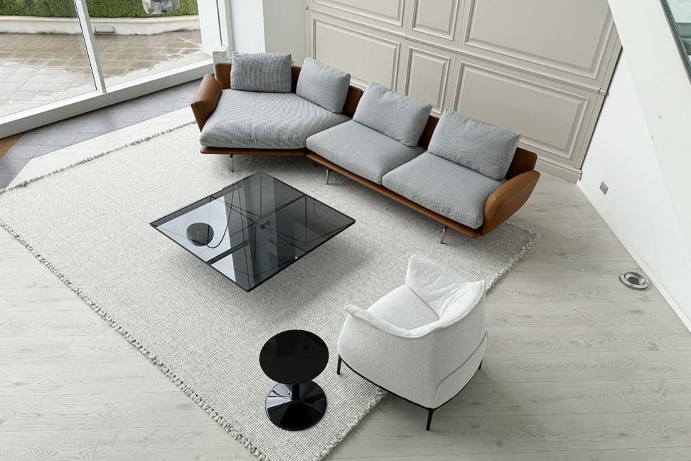 The Poltrona Frau Get Back Sofa, designed by Ludovica Serafini + Roberto Palomba, conveys an idea of comfort that is only seemingly informal, actually achieved through careful attention to proportions, stitching, and the balance between solid volumes and light lines. The seat and backrest merge into a single essential element, traversed by a thin piping that defines its profile with the precision of a pencil stroke. The rounded corners further soften the structure, while the leather armrest, enhanced by exquisite stitching details, flanks the composition and underscores its welcoming character. This more sculptural base is contrasted by the seat and back cushions, which are soft and generous thanks to their feather padding, accentuating the feeling of comfort and highlighting Poltrona Frau’s expertise in leather craftsmanship.