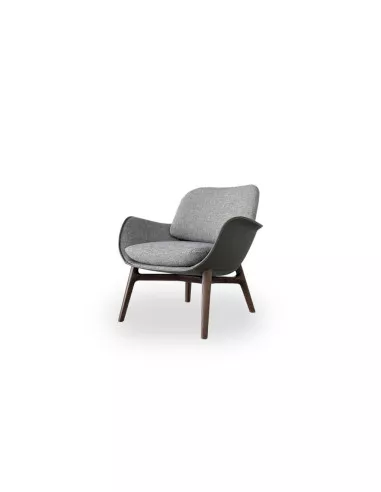 Its soft lines and the choice of contrasting materials give the seat a light and modern elegance. The dynamic design of the armchair is enhanced by the slight inclination of the seat toward the back to ensure optimal comfort. Martha features a four-leg base made of solid ash, available in Moka or Wenge finishes. The exterior of the shell is covered in hide leather while the interior is in Pelle Frau® leather or fabric.