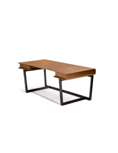 Characterized by a top shaped as a carved book, this desk has a solid ash base, available in Moka or Wengé finish; the top consists of a curved panel folded in two, which contains practical drawers and rear compartments, prepared for cable passage. The Peek-a-book desk is available with a top covered in the wide variety of leathers from the Pelle Frau® ColorSphere collection.