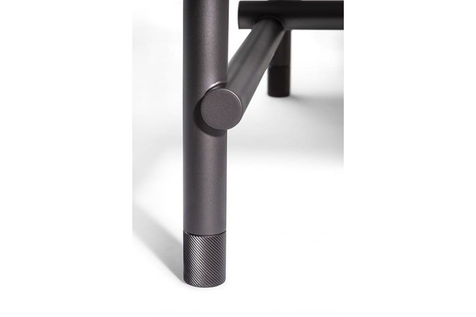The steel and aluminum structure supports the Nero Pagoda marble top, the true protagonist of these tables. The slabs are in fact cut into blocks of different widths, which are then arranged so that the veins of the marble create a game of parallel but staggered lines. Pierre is available in three different sizes.