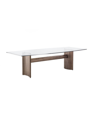 Beam table by Porada is mainly characterized by an eye-catching structure in canaletta walnut that supports the shaped top, available in the crystal, marble and stone versions. These tables come in a wide variety of different shapes and sizes, able to satisfy every possible need or personal taste.