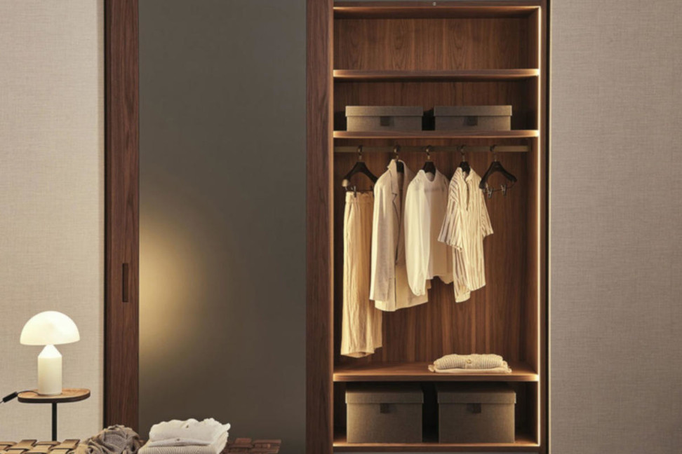 The Porada Gladko Wardrobe, designed by the design studio Essetipi, is a wooden storage solution intended for the contemporary bedroom. Entirely made of canaletto walnut, Gladko enhances the essence of wood and its natural grains, becoming a central element in the bedroom decor.