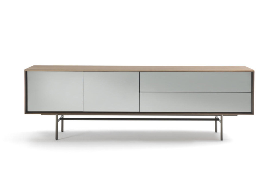 Harald by Porada is not only a functional sideboard, but also a complement to the undeniable charm, characterized by clean lines and a geometric and voluminous structure, lightened by a thin metal base, which lifts it off the ground and slanders the figure.