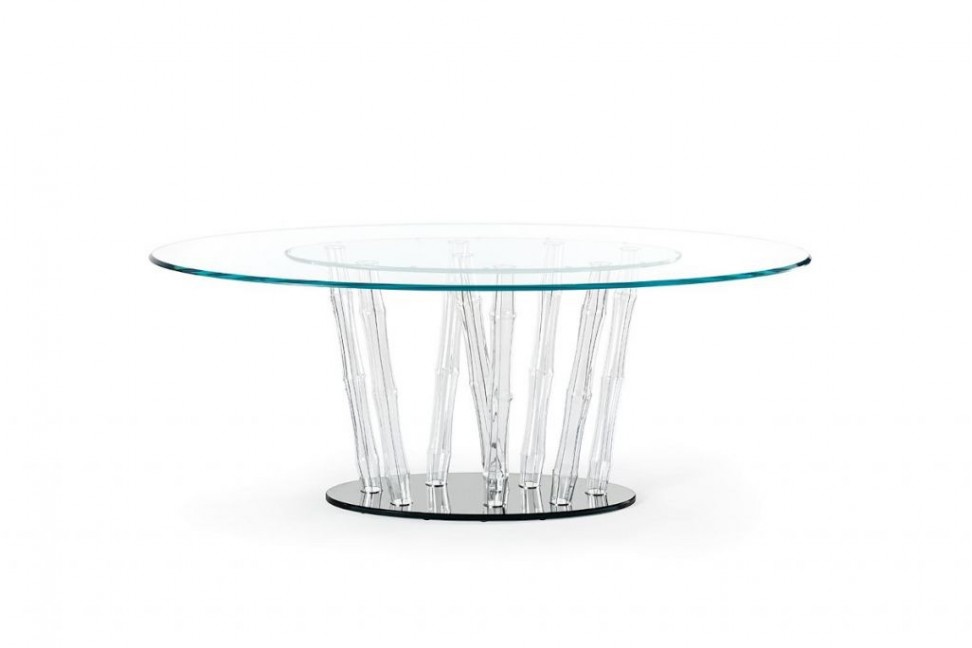 Like a bamboo forest, the Bamboo 72 table is one of the tables proposed by Reflex Angelo created by the designer Tulczinsky. The base is made of transparent Murano glass sticks with black filigree resting on a smoked mirror base. The top is in extra-clear transparent glass with a thickness of 15mm. The Bamboo table is also proposed in the Bevel Wood version, with top in Henna oak, matt or glossy ebony or matt lacquer.Reflex