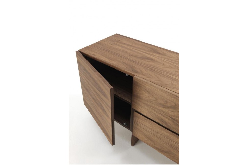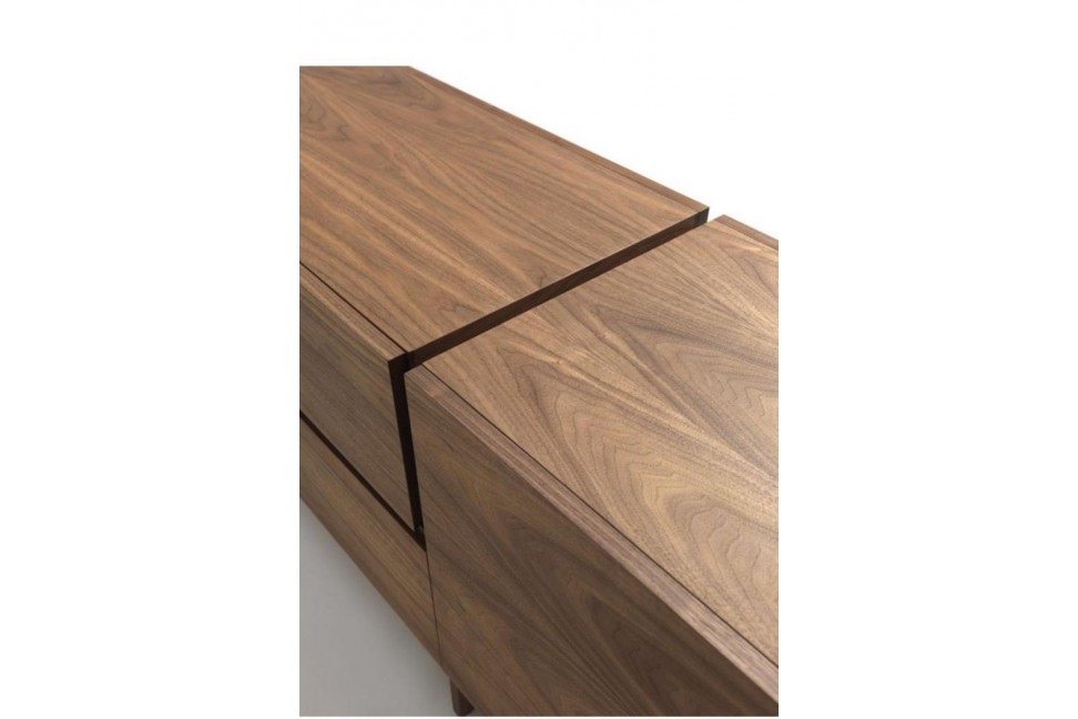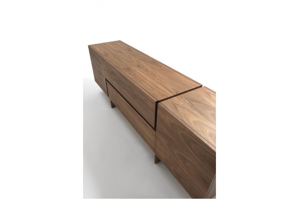 The Aki sideboard comes in one size and consists of a wooden structure, available in the various finishes of the collection, slendered by a thin base, made of wood as well, which raises the upper part from the ground.