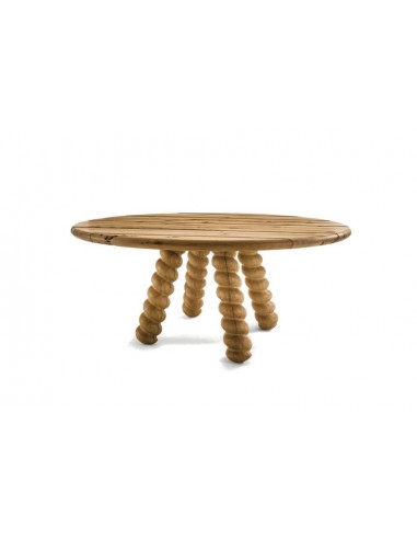 The Bric table is, in fact, made entirely of briccola wood, and is composed of a round top supported by a base with four legs with a peculiar twisted shape, which converge upwards thus giving movement to the figure.