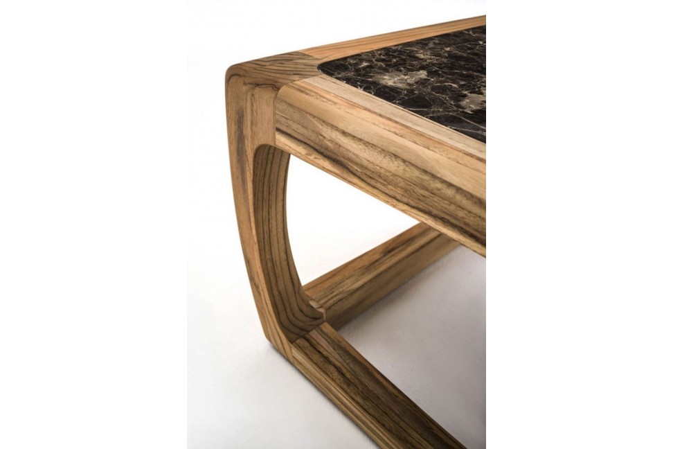 Available in a single size, Bungalow is composed of a solid teak wood structure, assembled and polished by hand, which embraces and supports the polished Emperador marble top.