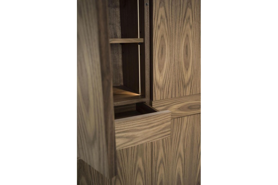Thanks to the presence of numerous internal compartments, hidden by elegant wooden doors with push-pull opening, this storage unit allows you to conveniently store objects of various types, while the high quality of wood and workmanship performed by master craftsmen gives and additional value to its formal simplicity.