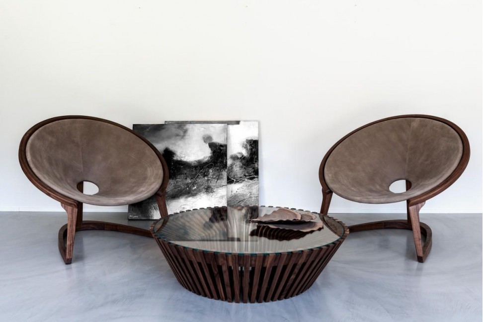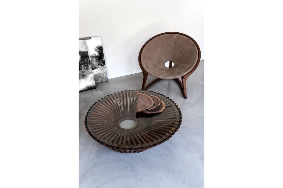 Designed to celebrate Riva's 100th anniversary, Yin & Yang is one of the new collections presented by the Made in Italy furniture company during the 2019 Milan Design Week.The award-winning designer Steve Leung has indeed created a line of complements that fully reflect the cardinal principles of the Riva 1920 philosophy: care for materials, craftsmanship, research and innovation. These elements, although in theoretical contrast, have determined the success of the Italian brand through time and have inspired the Asian designer to create a collection, which, as the name suggests, is based on the coexistence of antithetical elements from whose juxtaposition arises harmony. The Yin & Yan coffee table combines the hardness and solidity of the solid wood structure with the fragility and lightness of the glass that makes up the top, the sinuosity of the circle with the rigidity of the straight line, in a perfect visual balance. The original and inimitable style of this piece of furniture will make any type of environment unique.