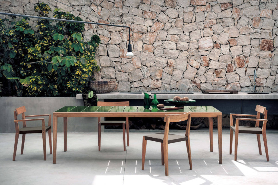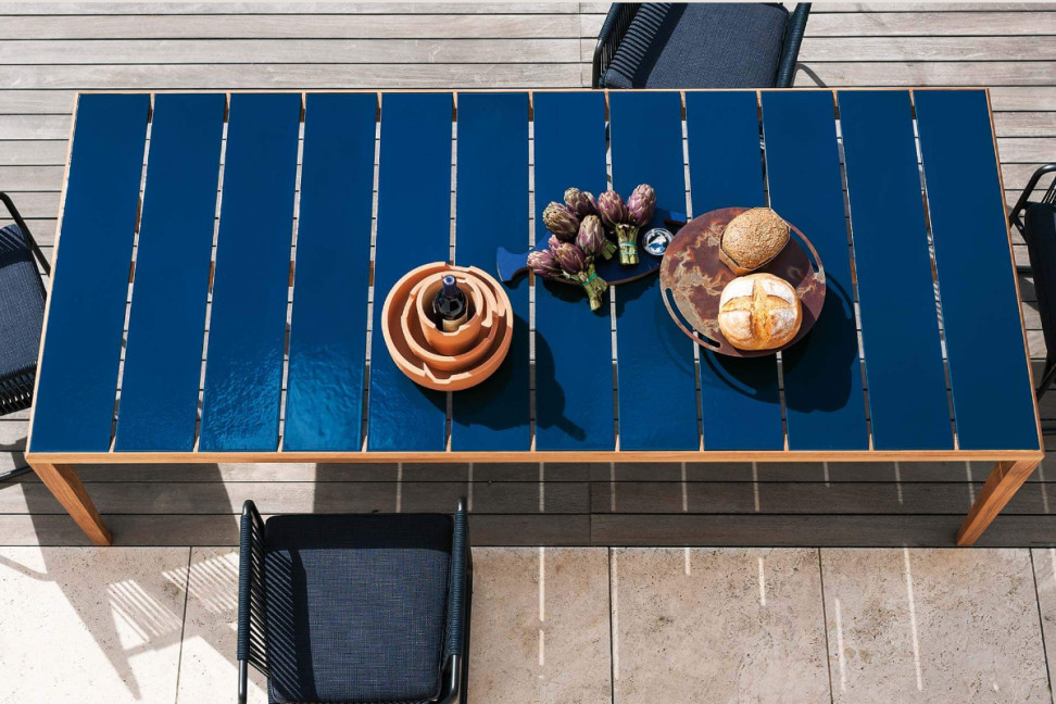 Combining the warmth of wood with the elegance of stoneware, designer Gordon Guillaumier has created the Teka outdoor table for the Roda brand, a refined piece of furniture that will join you outdoors in style.