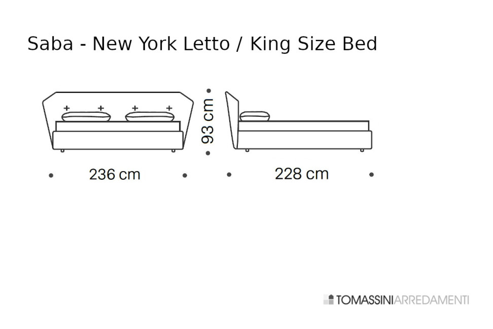 Both versions of the New York bed are completely removable, a detail that combines practicality and refinement. In the leather variant, additional stitching highlights the artisanal quality of the Saba craftsmanship. The headboard is made of padded wood with expanded polyurethane and covered in cotton fabric paired with polyester fiber, to offer optimal support and comfort.