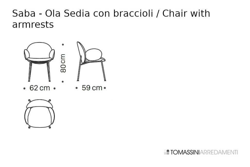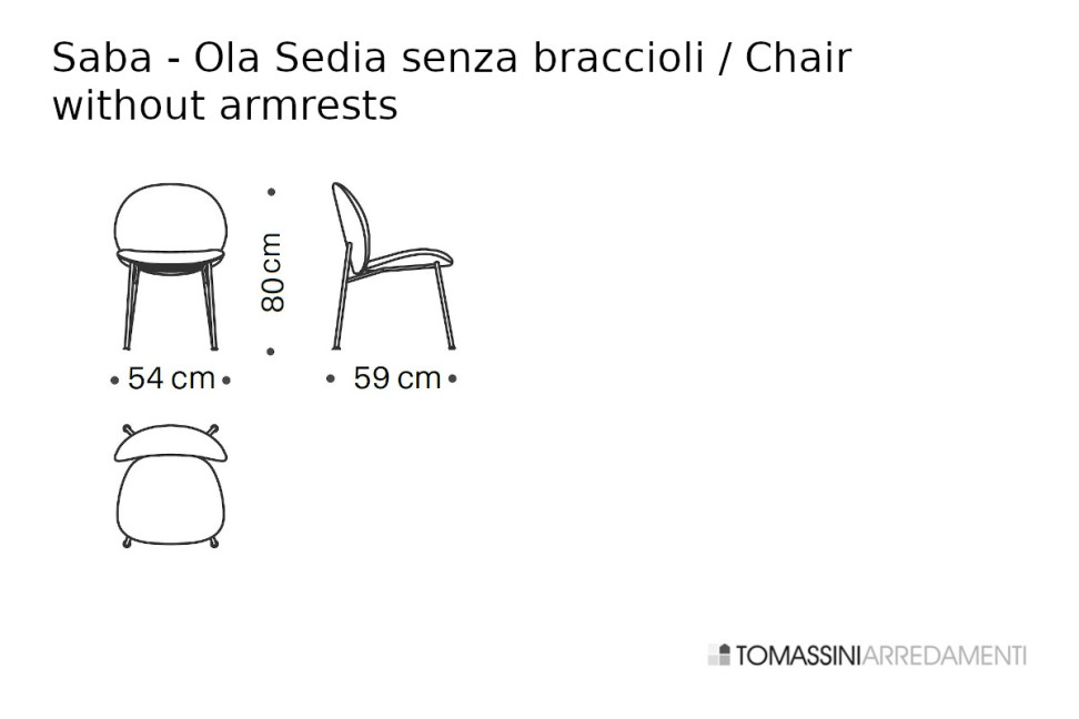 Technical Features:  The structure of the Ola Chair is made of bent birch plywood, padded with expanded polyurethane and covered with 100 g/m² polyester fiber. The feet, with a diameter of 18 mm, are made of painted or chrome-plated iron and available in various finishes.