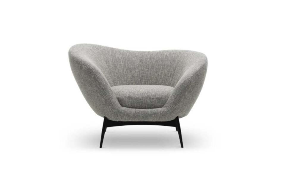 The Oltremare armchair comes from the design of Antonio Marras, who bases the creation of these products on the meeting of asymmetrical curves, creating enveloping backrest and armrests and an extremely comfortable seat. The Oltremare armchair is available with fabric and leather upholstery, with black painted metal feet.